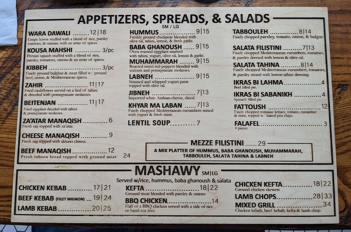 For those seeking grilled delights, the catering “Mashawy” section features juicy lamb kebabs, chicken kebabs, and mixed grills that promise rich smoky flavor, perfect for sharing. The Limonana drink—mint, lemon, and sugar—refreshes the palate, complementing hearty dishes. Customer reviews rave about generous portions, warm hospitality, and unique touches like yogurt sauce and pomegranate-accented grape leaves, making every visit feel personal and memorable.